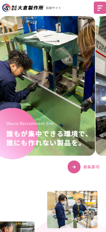 施工事例 HOME > 制作事例 > 製造業 > 【採用サイト】株式会社大倉製作所 株式会社大倉製作所様 クライアント名 株式会社大倉製作所 URL https://ok-ss.jp/recruit/ 制作依頼内容 新規制作 ページ数 4 投稿ナビゲーション 前の制作事例次の制作事例